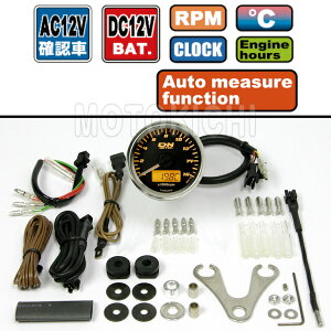 DC12Vバッテリー付き車用 【仕様】オレンジLED 【機能】 ・指針式電気式タコメーター ・デジタル表示 ・自動測定機能 ・エンジンワークタイマー ・時計:24時間表示...