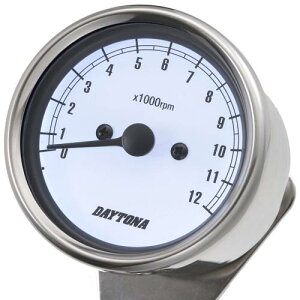 デイトナ バイク用 機械式 タコメーター ブラックボディ/ホワイトパネル/ホワイトLED φ60 12000rpm表示 15631 ・●12,000rpm ・●12Vバッテリー車専用 ...