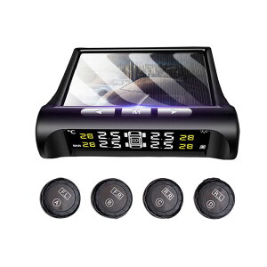 ●リアルタイム監視 各タイヤに取り付けたセンサーが リアルタイムでタイヤの空気圧と温度を検知し 異常があった場合は音と点滅でお知らします。 ●ソーラー&USBの2WAY充電 ●見やすいLCDディスプレイ