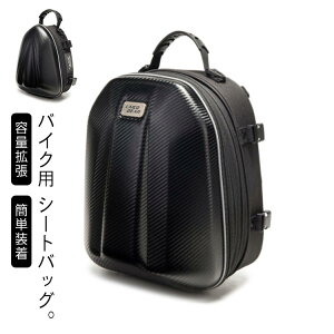 バイク用 シートバッグ。【容量拡張】容量が10L〜14Lに拡張し、ショートツーリングでも大活躍!旅先でのお買い物が急に増えてしまった時の安心の可変容量タイプ。【衝撃に強いEVA素材】シルエットを崩さなく、軽量で衝撃にも強いEVA素材採