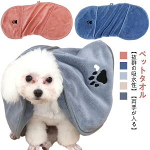【ペットタオル】【抜群の吸水性】【両手が入る】このタオル一枚で小型犬、中型犬、猫はもちろんのこと、大型犬も対応可能。両端はポケットになっており、両手をペットのあらゆる部位を包み込むことで、どんどん水分を吸収していきま