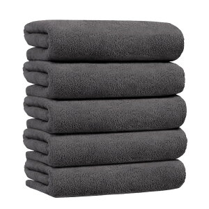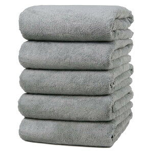 ul バスタオル マイクロファイバー ホテル仕様 大判 60*120cm 5枚セット 高速吸水 速乾 耐久性 抗菌防臭 ふわふわ 柔らかい 肌触り (グレー)【極上のマイクロファイバーバスタオル5枚】とろけるような極上の肌触り...