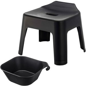 ◆商品名:山崎実業(Yamazaki) 引っ掛け風呂イス 座面高25cm + マグネット&引っ掛け湯おけ 【2点セット】 tower 浮かせる収納 バスチェア ブラック 5384 5379※こちらは「引っ掛け風呂イス(座面高25...