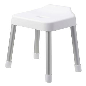 浴室のタオルバーや物干し竿などに掛けて乾かせる、フック付き風呂イス。座面高さ35cmタイプ。通気性の良い4本脚形状で、座面の裏側も乾きやすい。背面のプレートで、シャワーフックへの掛け収納も可能。脚部は軽くて乾きやすいアルミ