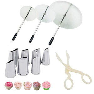 絞り口金は清潔で錆びません。クリームバラが作れ、ケーキのデコレーションに適しています。リフターはクリームフラワーをフラワーネイルからケーキに移動させる時に便利です。 パッケージ:絞り口金7個+フラワーネイル3個+リフター1個...