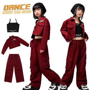 ダンス衣装 キッズ 韓国 かっこいい 長袖 赤シャツ ズボン ワイドパンツ 女の子 男の子 演出服 ジュニア 子供 HIPHOP ダンス衣装 発表会 演出服 応援 110 120 130 140 150...