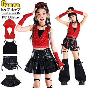 キッズ ダンス衣装 レッド トップス パンツ セットアップ 女の子 黒 スカート トップス レザースカート 韓国 k-pop衣装 ヒップホップ ジャズダンス 躍動感いっぱい 練習着