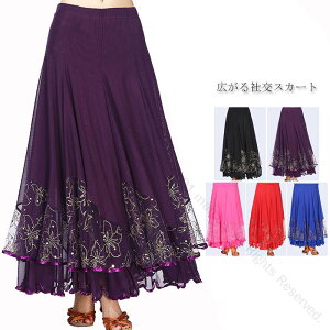 商品 ダンススカート素材ポリエステルサイズフリー スカート丈約90cm ウエスト60-100cm 身長目安158-175cmカラーレッド、パープル、ブラック、ブルー、ローズご了承いただきたいこと: ・採寸サイズなので若干の誤差がある場...