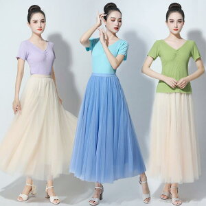 メッシュ素材と微フレアデザインで、松リラックス感を持たせつつ動きやすさを確保。形体表現や代舞、舞台衣装、発表会用としても活躍します。快適な素材で