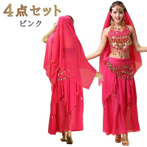 【商品詳細】 ■セット内容 ・トップス(背中あき、紐調節タイプ ※ブラではございません) ・スカート(コイン付きの布をウエスト部分に重ねております ※ヤードなど広がるタイプではございません) ・ヒップスカーフ(コイン付き、