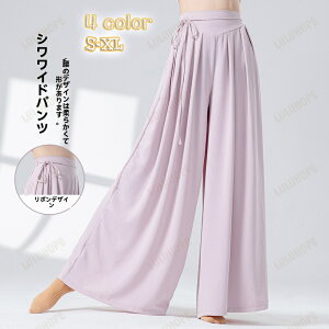 代舞に最適な練習着です。高腰デザインと垂れ感のあるワイドパンツで、脚線を美しく見せながら動きやすさも確保。舞台衣装や発表会用としても活躍し、ヨガやエクササイズウェ