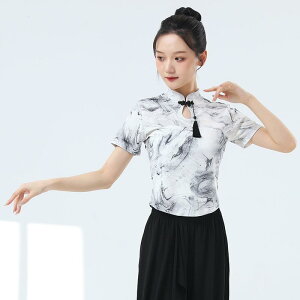 古典風ダンス衣装 ロング丈 チャイナドレス 七分袖 配色 スリット チャイナブラウス 中華ダンス衣装 中国踊り チャイナ民族ダンス 練習着 レッスン着 大人用 女性ダンス衣裳 古典ダンスウェア モダンダンス...