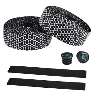 ロードバイク・自転車のハンドルカスタマイズに◎ クッション性のあるバーテープです。 2本セット、エンドキャップ付き ハンドルのグリップが効きすべり止めになります。 また、衝撃吸収効果もあり、疲労軽減!...