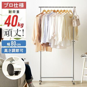 2本(約)150kgで頑丈に使える。※走行時は耐荷重(約)50kg ●たっぷり衣類を掛けられる。●キャスター付きで動かしやすい。 本体サイズ:(約)幅95×奥行45×高さ114.7〜186.3cm 材質:本体/金属(鋼)...