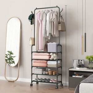 寝室用 ベッドサイドクローゼット 衣服掛け簡易収納ラック 壁際掛け物掛け収納 ハンガーラック 洋服掛け キャスター付き 衣類収納 省スペース 軽量型 ハンガーラック 頑丈 コンパクト 簡単組み立て シンプル...