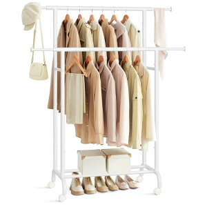 【前後2段タイプ】2段構造で収納力が高く、衣装持ちの人にお薦めのハンガーラックです。30?76枚の服を収納できるので、クローゼットの代わりとしても使用できて収納スペースをアップさせます。パイプの高さが...