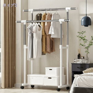 丈の長い洋服もすっきりキレイに。収納力とディスプレイどちらも叶える多機能ハンガーラックで、快適な収納空間を。 【キャスター付き】ストッパーがついているキャスターも付きで移動もらくらく、自由に移動でき、お掃除やお部屋の模様...