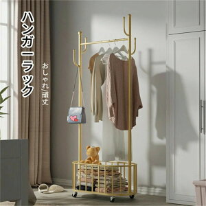 ハンガーラック コートハンガー 洋服掛け スチール スリム おしゃれ パイプハンガー 棚付き キャスター付き 衣類収納 シンプル ナチュラル 組立簡単 コートラック ハンガーポール 高耐荷重 多機能 ...