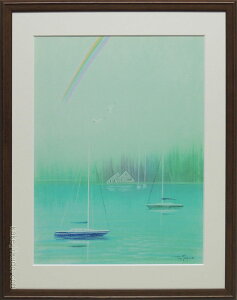 【画 題】水辺のヨット(みずべのヨット) 【解 説】パステル画のもつ優しい色合いと柔らかな筆致で描かれた風景が心にぬくもりを届けてくれる作品です。季節の風の中で今成敏夫画伯が描くメルヘンの世界をお手元でお楽しみください