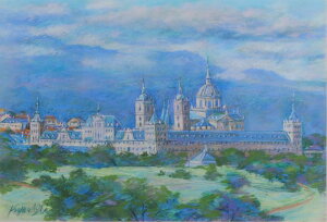 W53×H36cm ●額装サイズ:W80,5×H63,5cm ●絵画の技法:パステル画 ●サイン:作家直筆サイン 石井清先生がパステル画の絵画で描いた城の絵「エル・エスコリアル宮殿」はス