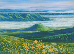 ●画家名:石井清 ●作品名:ユウスゲの咲く米塚・G ●絵のサイズ:W48×H35cm ●額装サイズ:W70×H55cm ●絵画の技法:ジークレー ●サイン:作家直筆鉛筆サイン 石井清先生がジークレーの版画に手彩を加えて制作した熊本の阿...