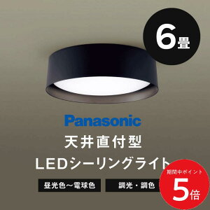 Panasonic パナソニック 天井直付型LEDシーリングライトリモコン調光・リモコン調色 〜6畳 LGC21180 照明 昼光色〜電球色 ブラック