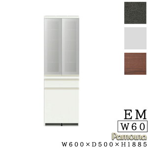 Pamouna パモウナ ECシリーズ 食器棚。品番:ECA-S600K ハイカウンター。カラー:パールホワイト / ウォールナット / セラミカネロ。サイズ:W 600 × D 445 × H 1975(カウンター...