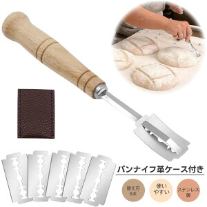 パンナイフ 替え刃付き保護カバー付き切れ味のいい刃で繊細なクープが入れやすいです。柄が手になじむ木製です。保護カバー付きため携帯するのにも安心。ステンレスで錆びに強く、耐久性も抜群です。バケットやカンパーニュなどのパン