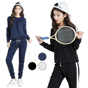 楽ちんコーデセットアップ2点上下セットスウェットセットアップ。フェイクレイヤード風の長袖カットソーはシンプルで着まわしが利きます。スウェットパンツはウエストゴム仕様で、足の外側に2本のラインが縫い付けてあります。ルーム