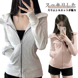 スッキリしたスリムシルエットが魅力♪細身のデザインで、メリハリのあるシルエットを演出してくれるスウェットパーカー。首元までしっかりカバーできるハイネックデザインがオシャレさんにも最適♪トレンドライクな指穴デザインがポ
