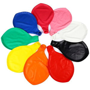セット内容:巨大バルーンは9色セットです。色:ブラック・ホワイト・レッド・オレンジ・イエロー・グリーン・ブルー・ピンク・マゼンタ 風船のサイズ:風船の膨らませるサイズは約36インチで、圧倒的大きさがとても目を引きます。推奨年齢