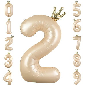 GRESATEK バルーン 数字 風船 誕生日 40インチ 大きい ナンバー2 バースデーバルーン 王冠付き クラウン 飾り付け 結婚式 パーティー 記念日 ウェディング キャラメル【かわいい“?”が...
