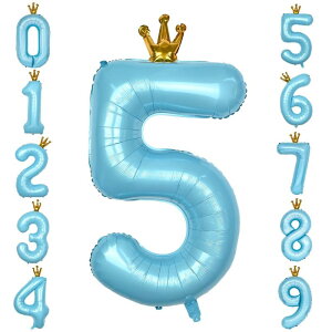 GRESATEK バルーン 数字 風船 誕生日 40インチ 大きい ナンバー5 バースデーバルーン 王冠付き クラウン 飾り付け 結婚式 パーティー 記念日 ウェディング ブルー【かわいい“?”が数字...