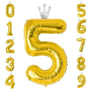 GRESATEK バルーン 数字 風船 誕生日 40インチ 大きい ナンバー5 バースデーバルーン 王冠付き クラウン 飾り付け 結婚式 パーティー 記念日 ウェディング ゴールド【かわいい“王冠”が...