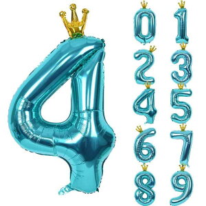 Lausatek バルーン 数字 風船 誕生日 40インチ 大きい ナンバー4 王冠付き クラウン バースデー 飾り付け パーティー 記念日 結婚式 男の子 女の子 約100cm 青緑 ブルー【ナンバ...