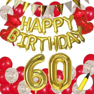 還暦祝い 60歳 数字バルーン 赤い 誕生日 飾り付け 風船 バルーン デコレーション(空気入れポンプ付き)パッケージ内容:・「6」「0」数字バルーンゴールド(膨らまし時の高さ約65cm)・HAPPY...