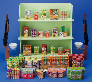 ●ディスプレー台:695×800×380mm、鉄砲:全長650mm×2、吸盤弾×20、お菓子アソート×100 ●常温180日、卵・小麦・乳