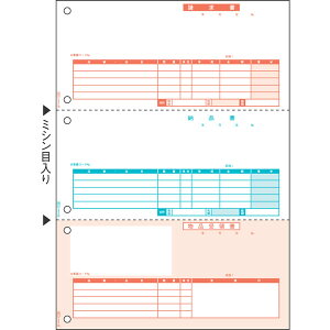 納品書 A4タテ 3面 A4三ツ折用の窓つき封筒にぴったり入ります。 その他の納品書はこちらから 入数 500枚 サイズ A4 210×297mm ミシン目切り離し後のサイズ 210×99mm 面付け 3
