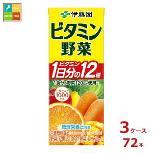 伊藤園 野菜ジュース 選べる3ケース 200ml×24本×3ケース (72本) 【選択商品 1】617215-01ビタミン野菜 紙パック。野菜と一緒にビタミンC 1000mgをはじめ、ビタミンE、ナイアシン...