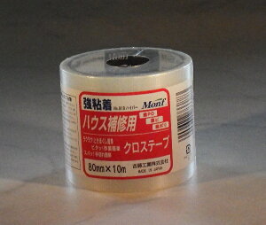 農POフィルムに使える強力粘着の補修用テープ。 手切りの簡単なクロステープ。 ■材質:ポリエチレン ■幅×長さ:80mm×20m