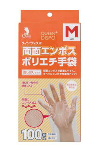 左右兼用100枚入り。パウダー無タイプ。凹凸のあるエンボス加工。●商品サイズ:全長29cm、中指のサイズ約8cm、指周り約4cm。●材質:PE。●包装形態:化粧箱。
