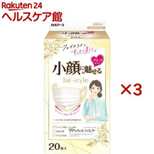 白元アース be-style ビースタイル プリーツタイプ ふつうサイズ プレミアムホワイト 20枚入 小顔に魅せる女性用のマスク プリーツマスク マスク 4902407582324 <...