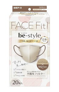 【商品詳細】フィット感の女性用立体マスク。すっきりみせるスマートカット。メイクがつきにくくやさしい肌ざわり。0.1μmの微小粒子カットの不織布フィルター。マスクの色:サンドベージュ、耳ひも:マロン。商品区分:日用雑貨品...