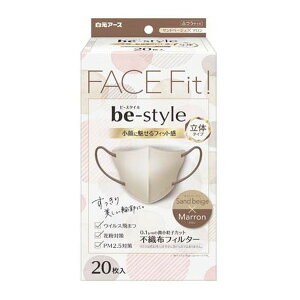 ビースタイル 立体タイプ ふつうサイズ ミルクティーベージュ (20枚入) (マスク 小顔 白元アース) ●顔にフィットして小顔に魅せる、すっきり美しい輪郭に ●メイクがつきにくい ...