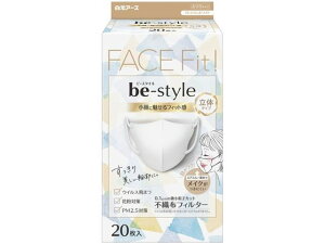 ビースタイル 白元アース 立体マスク ふつうサイズ プレミアムホワイト 20枚入 JIS規格適合 耳が痛くならない幅広耳ひも メイクがつきにくい 不織布 花粉症 3Dマスク JANコード 4902407582393...