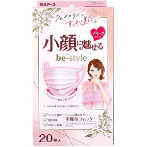 ビースタイル 立体タイプ ドーリーピンク ふつう (20枚入) (マスク 小顔 白元アース) ●顔にフィットして小顔に魅せるすっきり美しい輪郭に。 ●マスクのカラー:やさしいピンク...