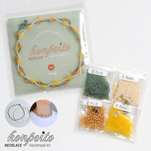 ゴールドのモチーフが目を惹くネックレス。パステルは、ツヤ感のある軸にマットなレモンイエローがアクセント。 金具を使わず、ころんとしたキューブで留めるデザインで、後ろ姿もかわいらしいです。 パターンを増やすことで、長さは