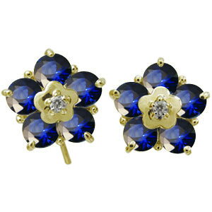 9月誕生石サファイアを使用した10金製の、フラワー(花)モチーフピアスです。 ※【10金カラー3色から】お選び頂けます。※両耳セット価格です。 ※スタッドピアス(シリコンキャッチ付)に変更もできますの...