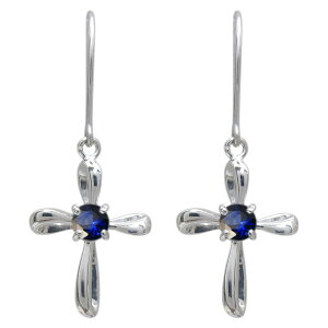 9月誕生石サファイアを使用したシルバー製の、クロス(十字架)モチーフメンズスタッドピアスです。 ※両耳セット価格です。片耳での販売も対応しておりますので、片耳希望のお客様は備考欄にご記載ください。(ご注文確定後...