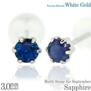 素材:K10ホワイトゴールド 主石:天然サファイア 3mm 寸法:約3.2×3.2mm ポスト:0.65φ10mm 3ミリの誕生石を使った上品でシンプルな6本爪のスタッドピアス。 3mmともなれば、控えめながらも色味や輝き...
